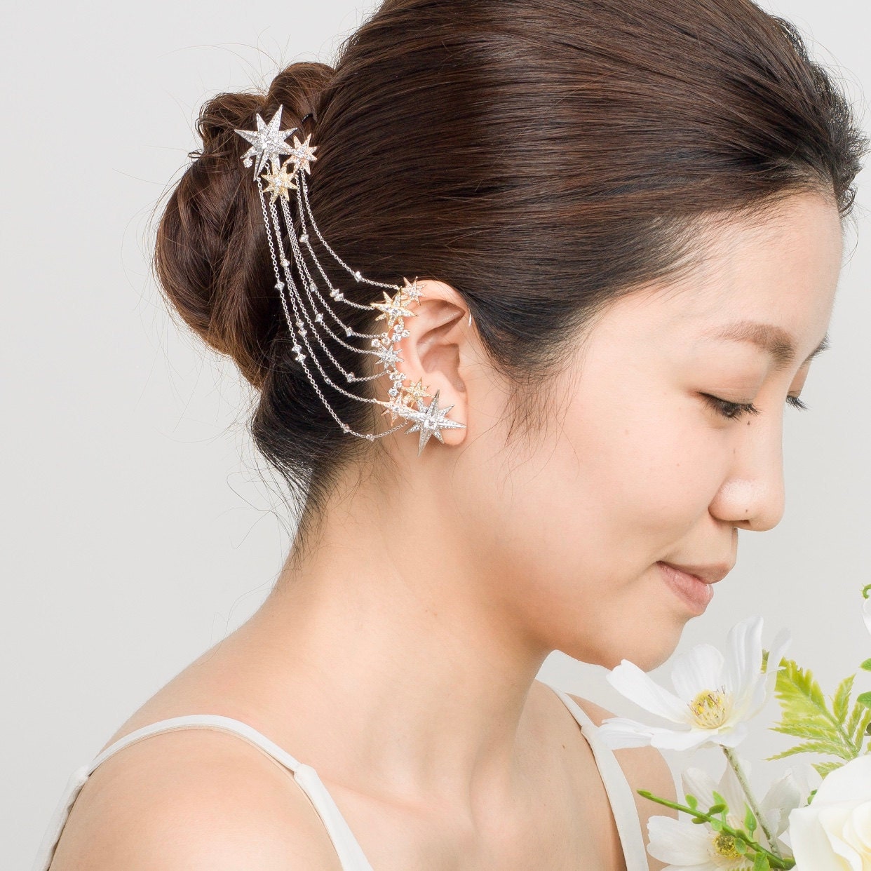 Guardian Star - 18K Gold Diamond Ear Climber with Hair Pin