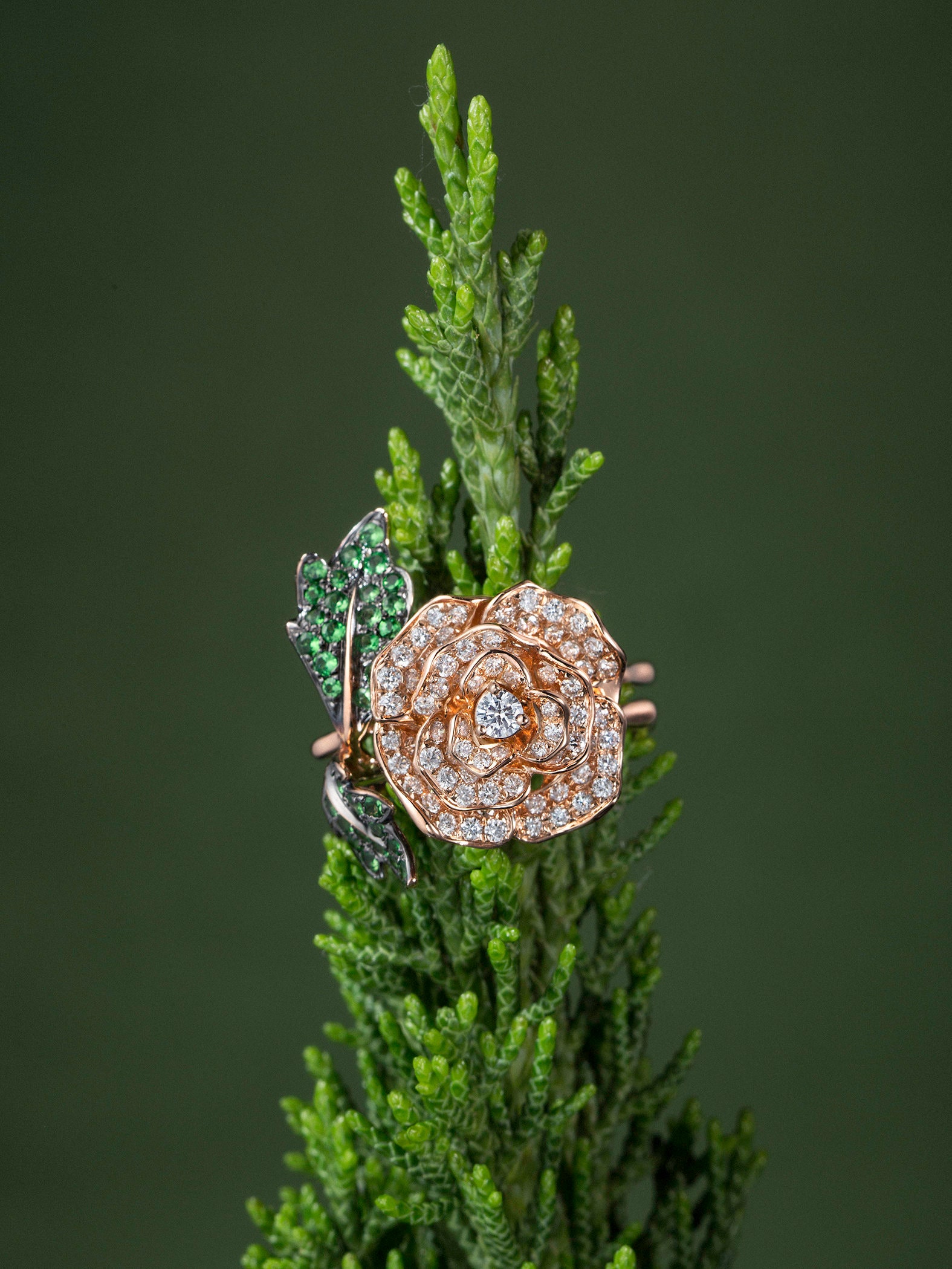 Rose Garden Collection - 18K Rose Gold Diamond & Tsavorite Ring