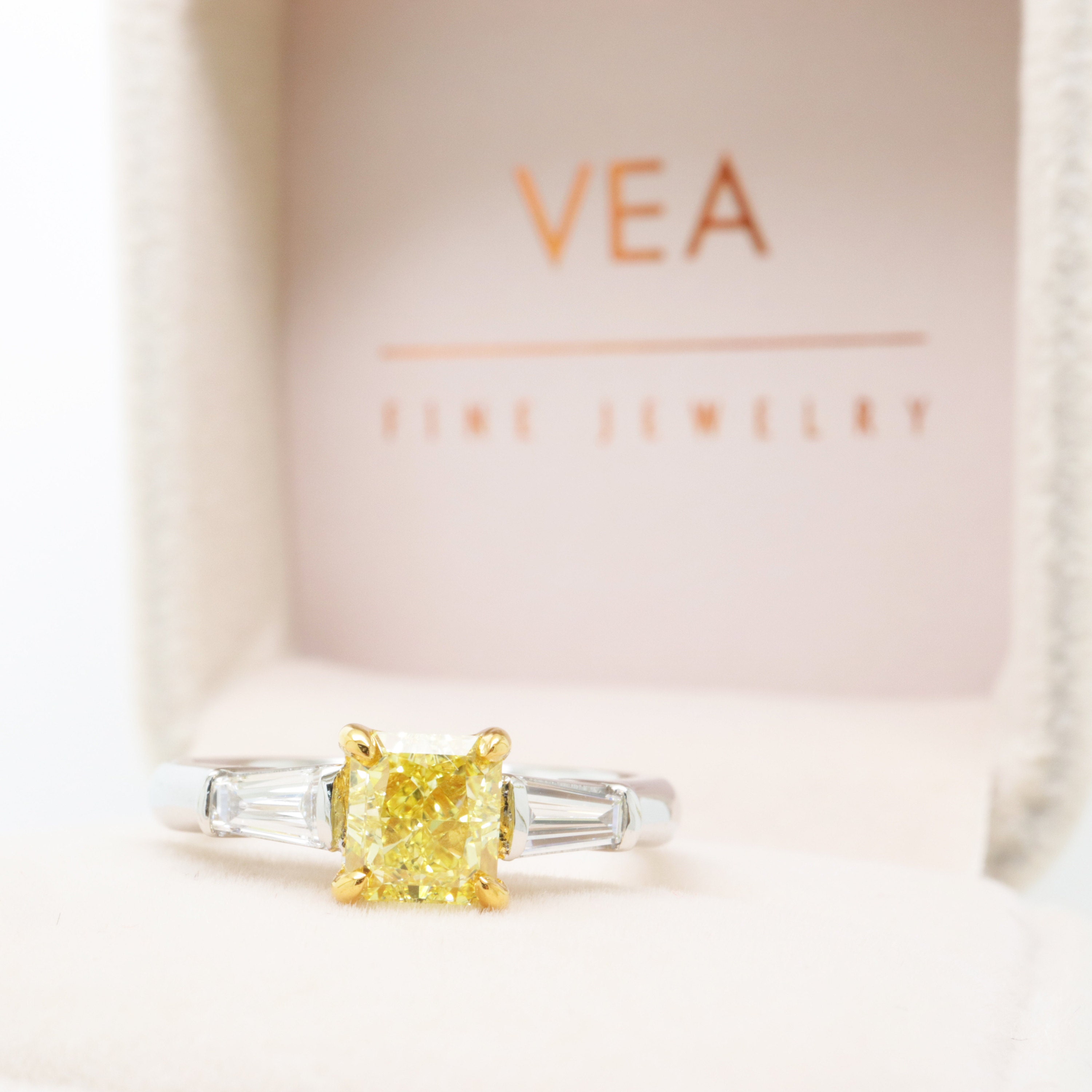 1.10ct Radiant Cut, Fancy Intense Yellow, IF - 18K Gold Diamond Ring