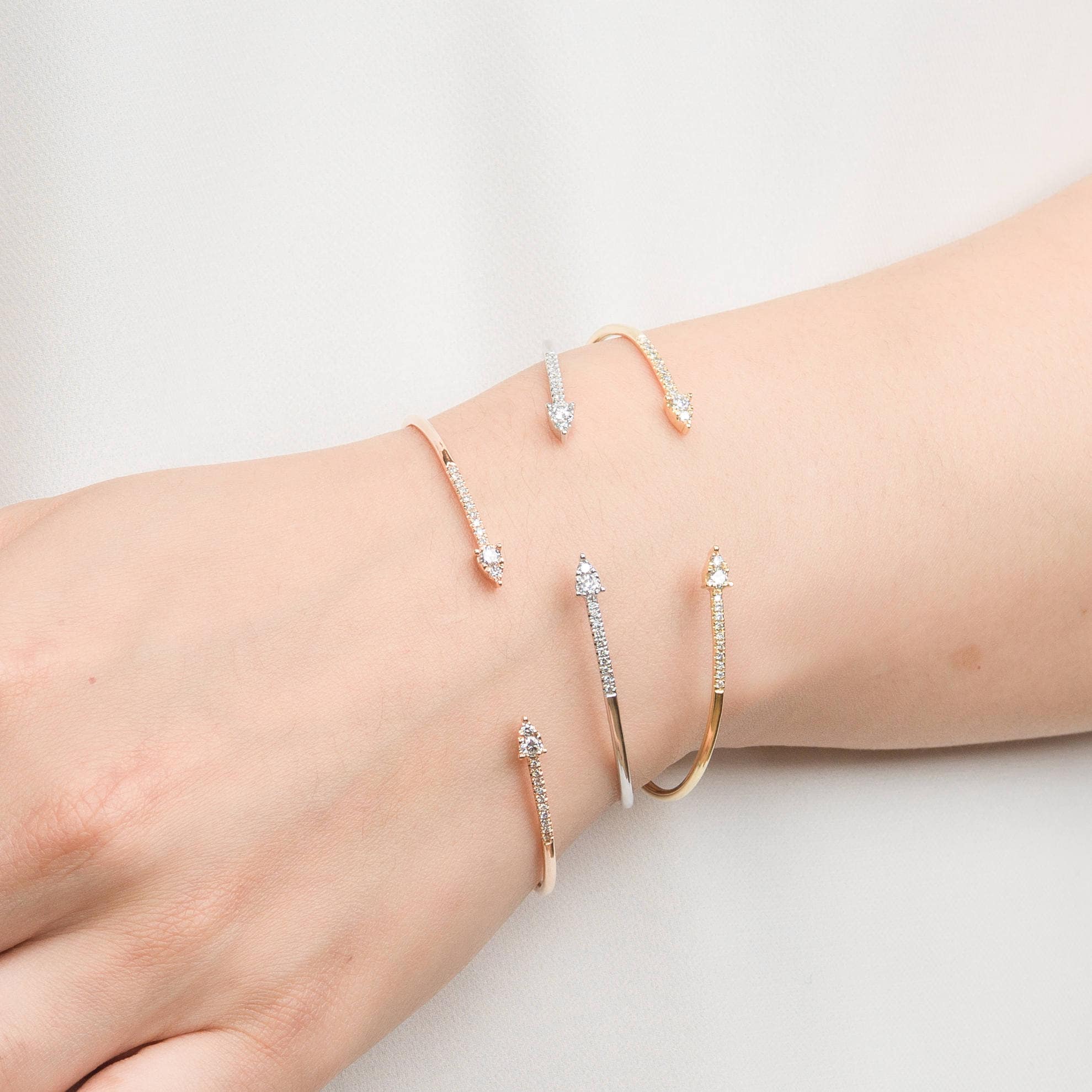 Cast from high-shine 18K gold this delicate handmade style is punctuated with 0.23ct of eye-catching diamonds.