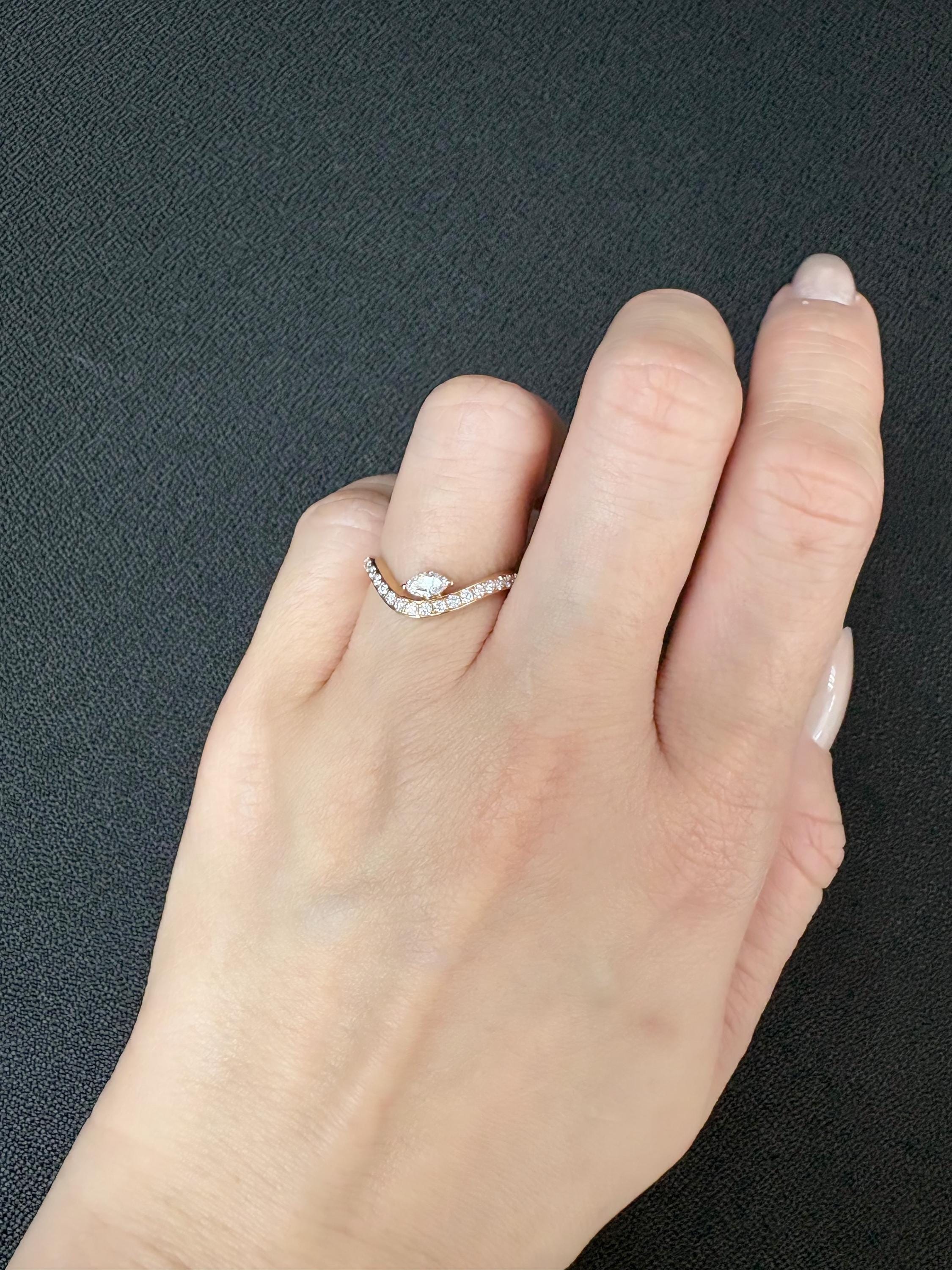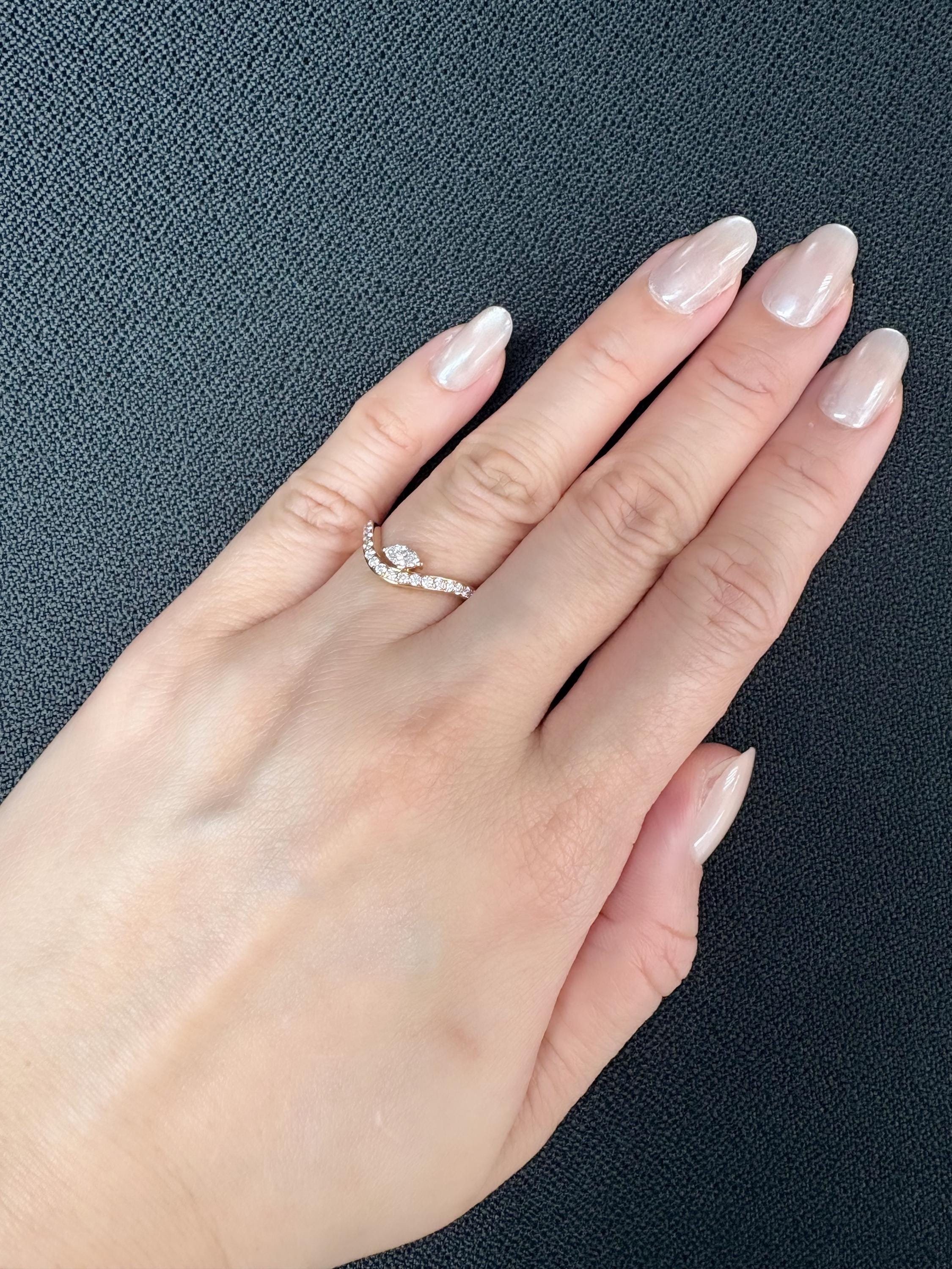 Handmade in 18K gold, this chevron-style band features a marquise center stone nestled at the V and a row of diamonds along the shoulders. The gentle V-shape flatters the finger while the subtle sparkle keeps it casual and easy to wear-perfect on its own or paired with other rings for a relaxed stacked look.