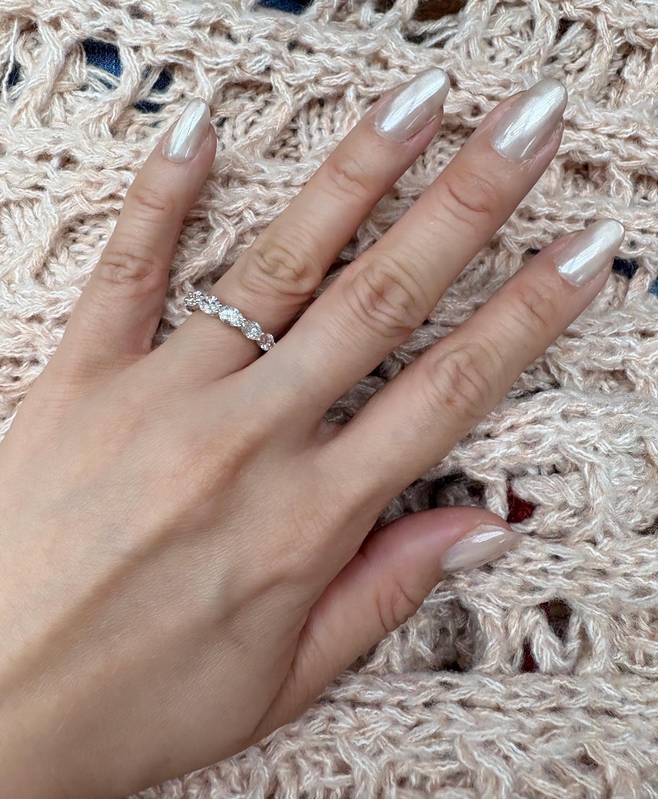 A refined seven-diamond band in 18K gold with shared-prong settings for continuous brilliance. Easy to wear solo or stack with favorites.