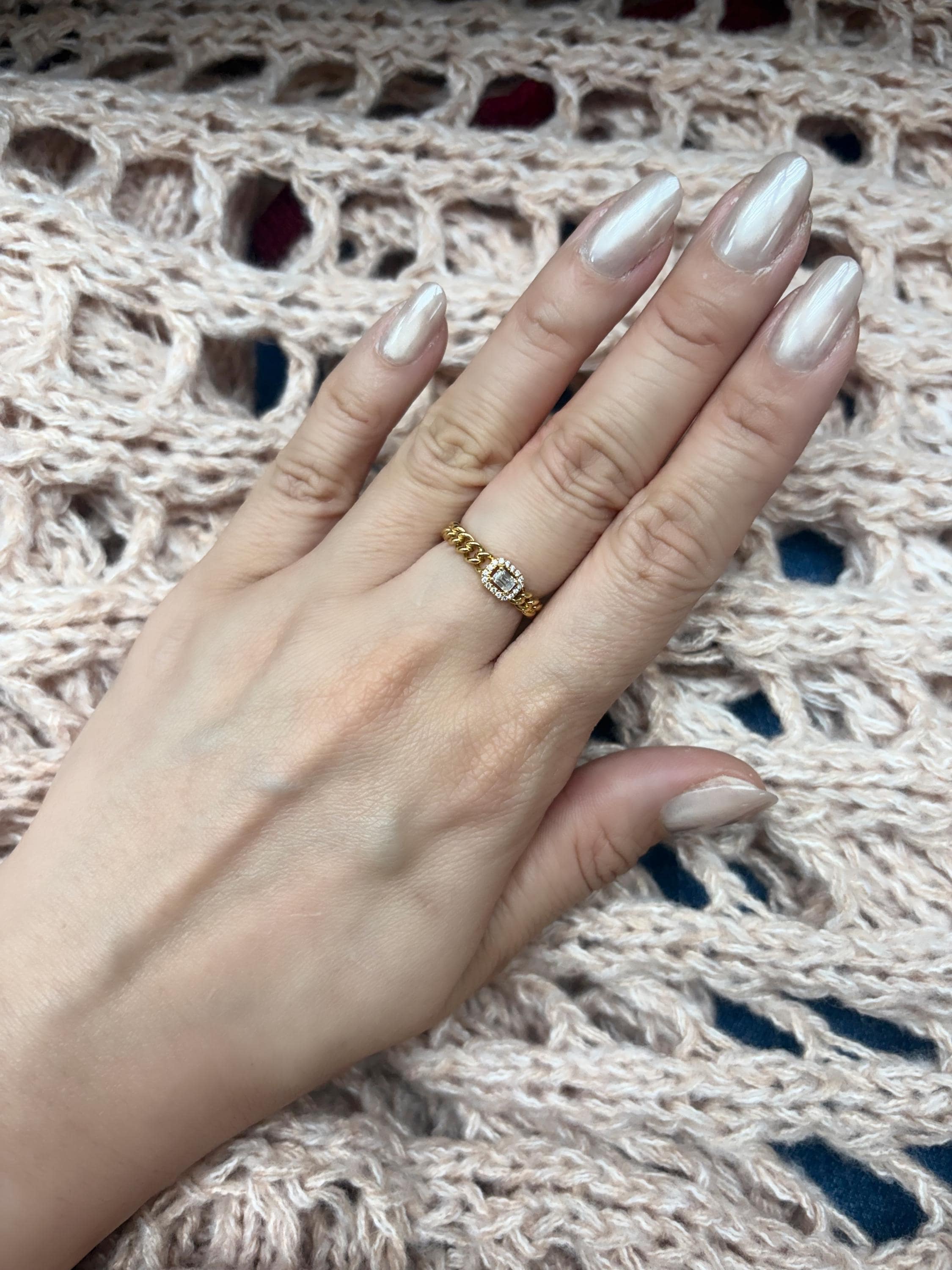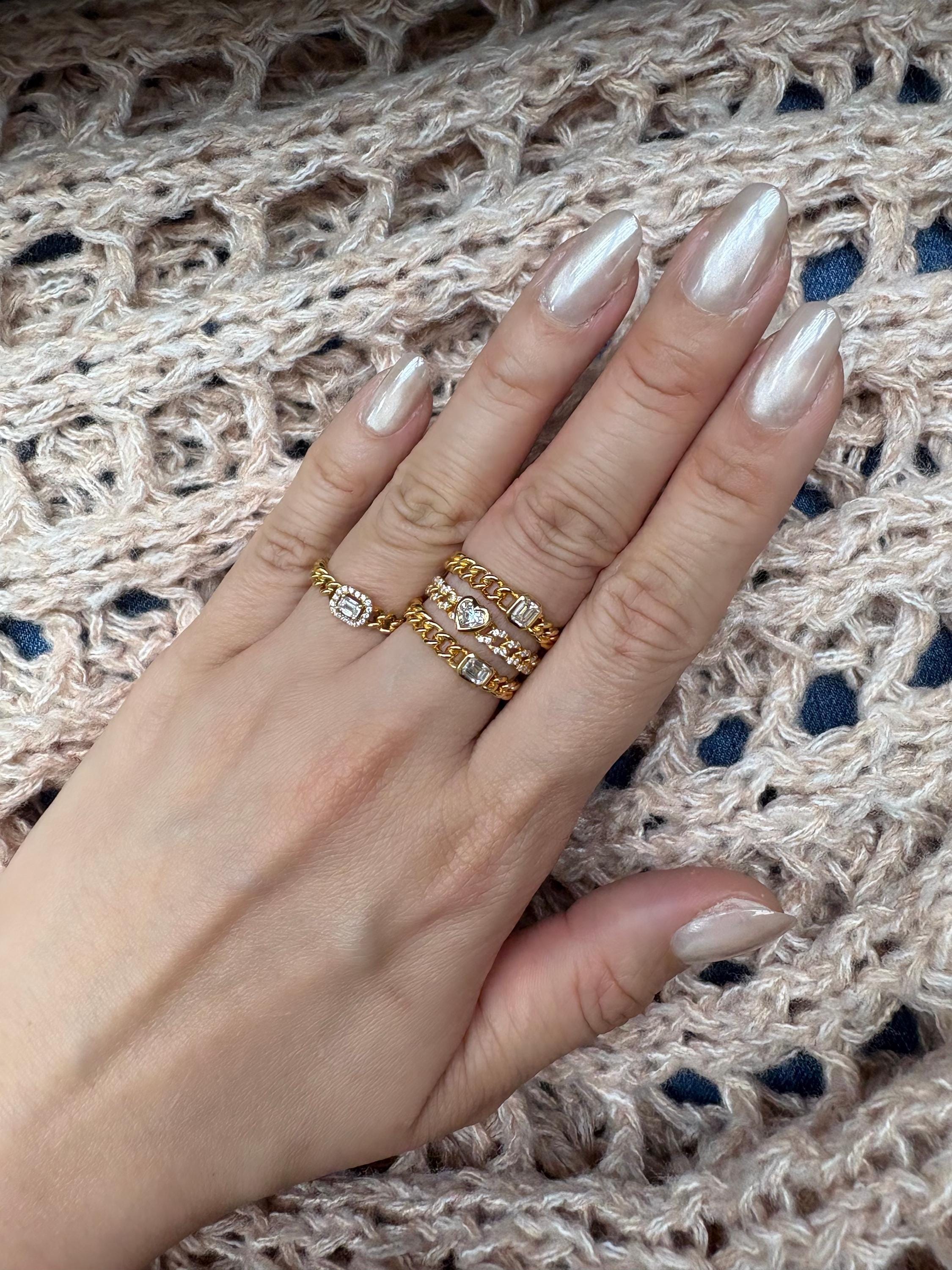 The modern chain detail keeps it cool and easy to wear—perfect for everyday sparkle or mixed into your favorite stack.