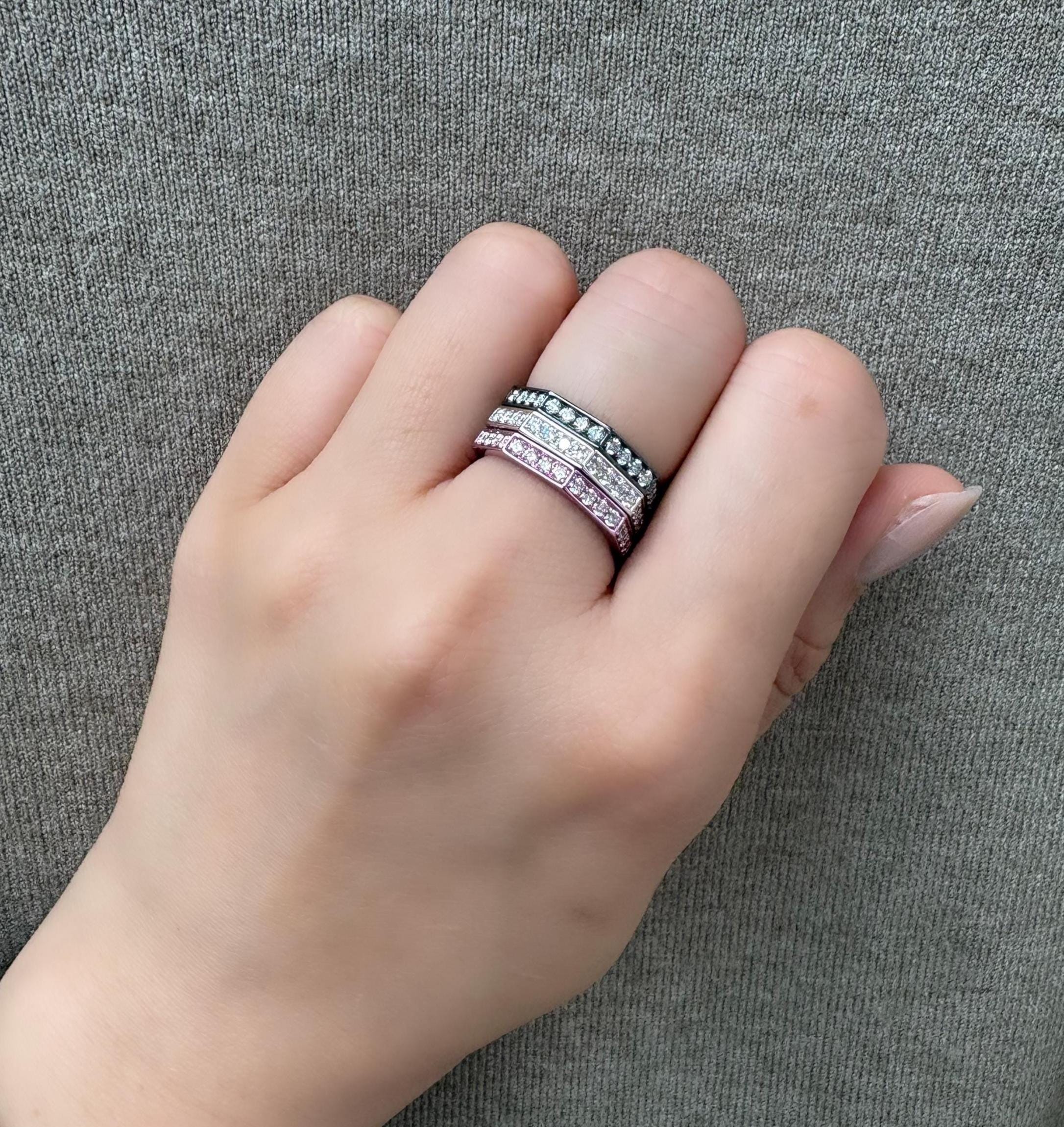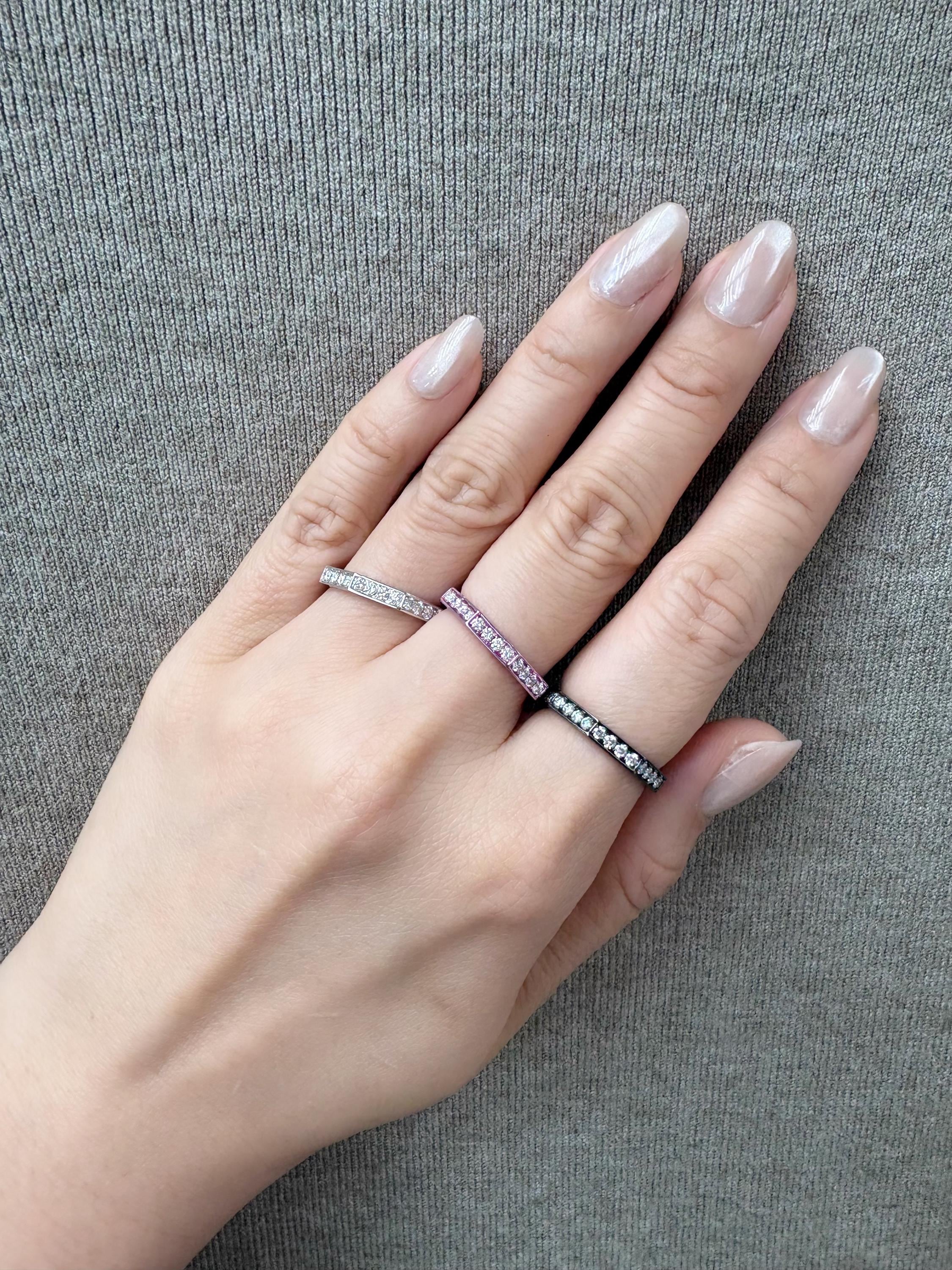 Handcrafted in 18K gold, each with a sparkling diamond channel. Mix and match: wear one for everyday ease or layer all three for an elevated, modern stack.